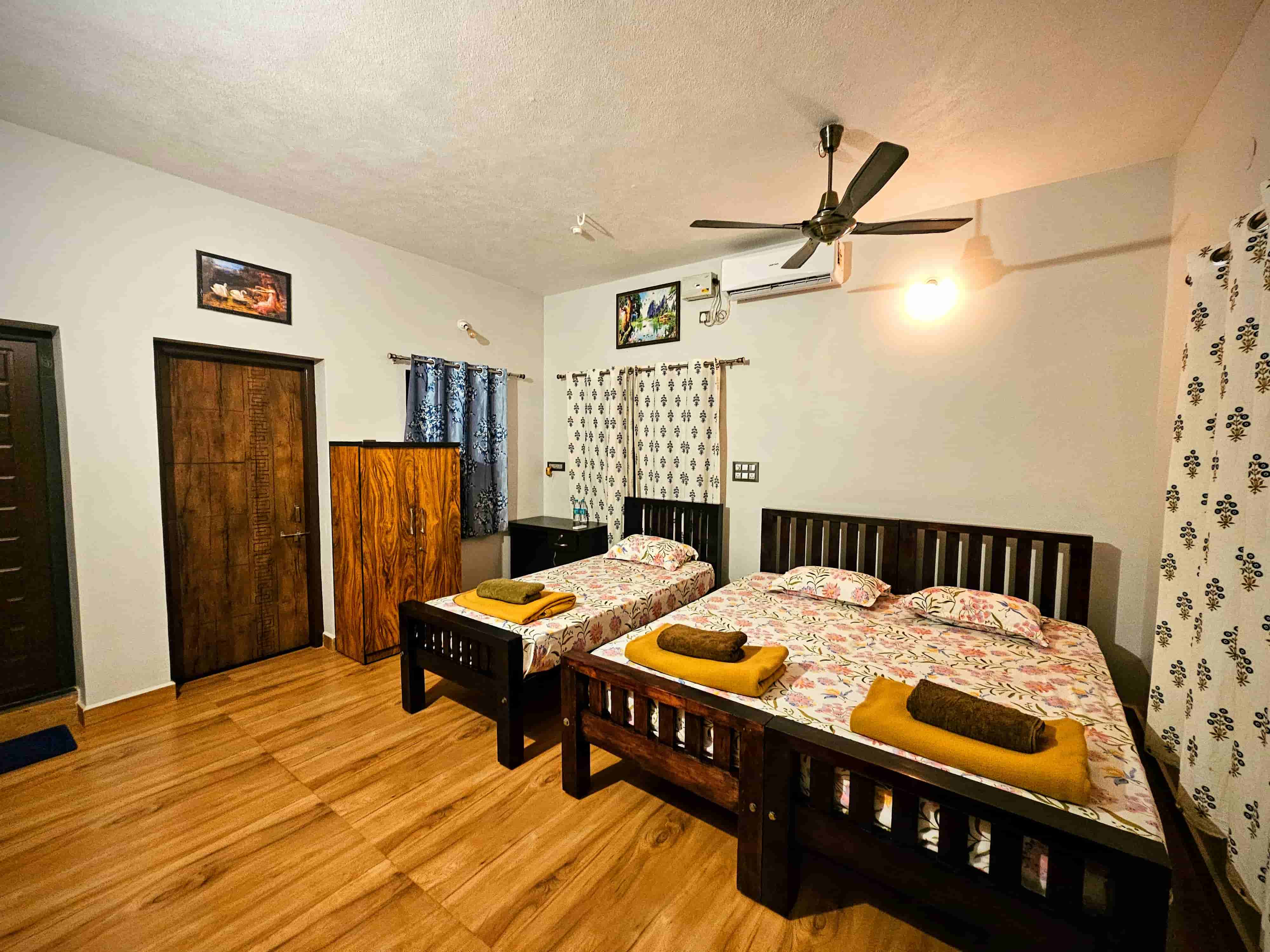 Nestled between lushgreen farms and golden sands, Beach Melody Stay is a sanctuary for travelers seeking peace and authenticity. Just 50 meters from Gokarna Main Beach and 2.5 km from the town and Gokarna temple, it offers the perfect balance of seclusion and accessibility. Surrounded by nature and away from the town’s bustle, it’s an ideal retreat for families, friends, loved ones, or even a peaceful workation. With boutique comforts in a farm-style setting, it invites you to slow down, reconnect, and enjoy a soulful Gokarna experience. Free parking is available just 25 meters from the stay.